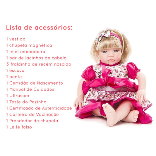 BONECA BEBE REBORN PRINCESA 19 ACESSÓRIOS COMPLETA PREMIUM